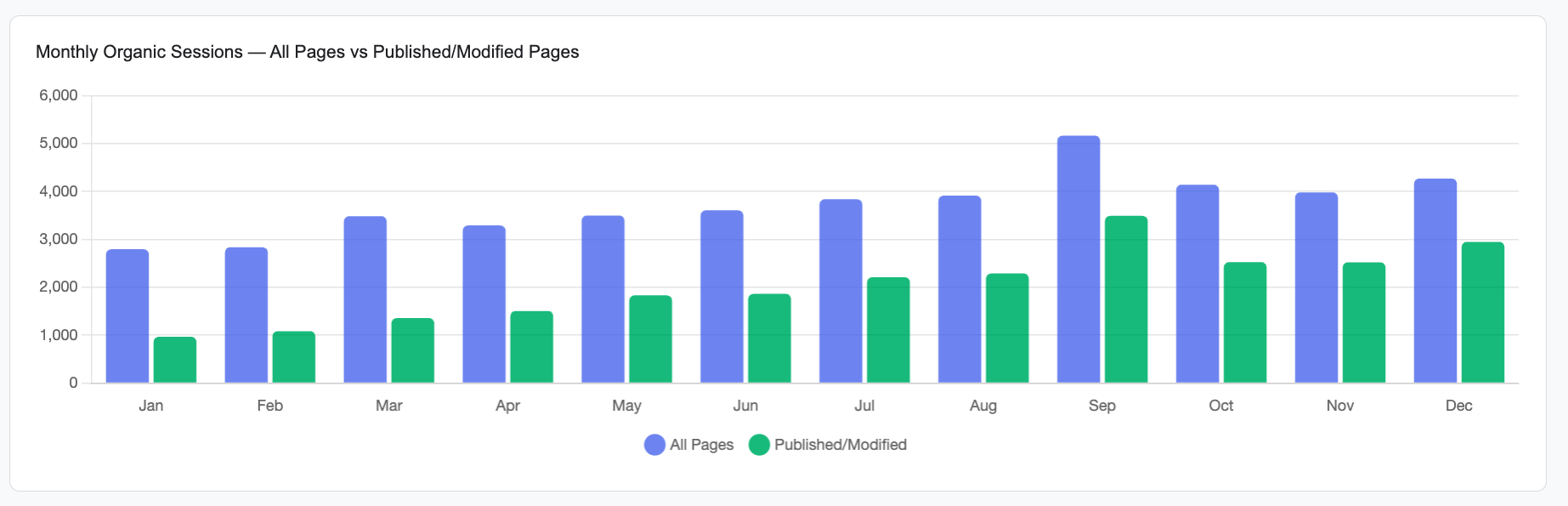 This graph tells the story: at the start of the year, my new pages were a small fraction of traffic. By December, they dominated. That's strategic content execution.